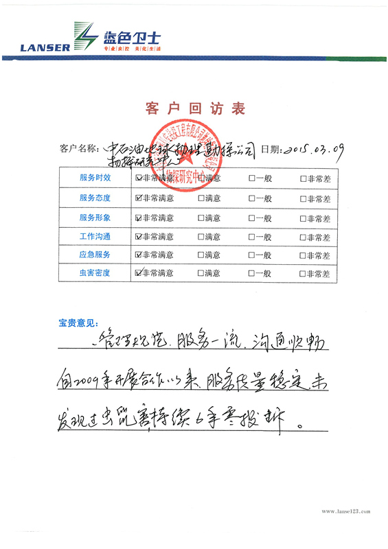 通過合作,對四害的消殺控制的很好,符合項目品質要求!